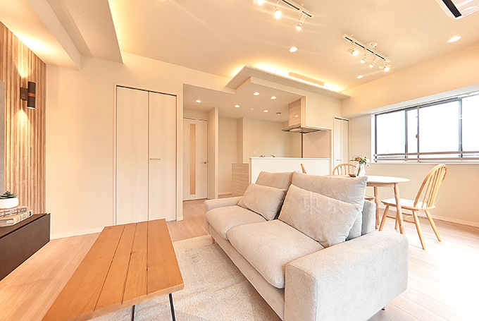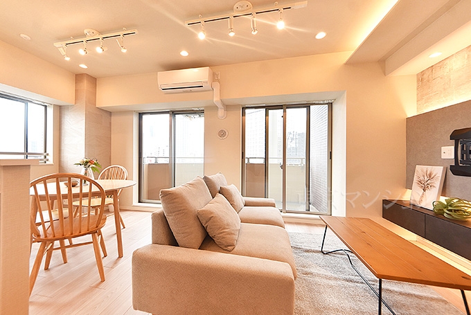 2沿線以上利用可 / 角住戸 / フローリング / 24時間換気システム / エアコン / 室内洗濯機置場 / 収納スペース / システムキッチン / 食器洗乾燥機 / 浴室乾燥機 / 追焚機能 / シャワー / バス・トイレ別 / 室内洗濯機置場 / 宅配ボックス / エレベーター / オートロック / 内装リフォーム / 家具・家電付 / 照明器具付