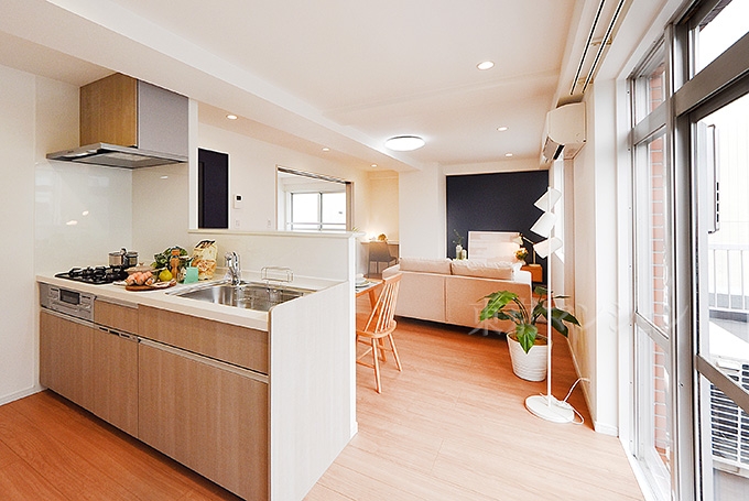 瑕疵保証付(不動産会社独自) / 修繕・点検の記録 / 角住戸 / 最上階・上階なし / 南向き / LDK15畳以上 / 全居室収納 / シューズインクローク / システムキッチン / 対面式キッチン / 食器洗乾燥機 / 浴室乾燥機 / ワイドバルコニー / 南面バルコニー / ルーフバルコニー / 省エネ給湯器 / 高速ネット対応 / CATV / BS端子(アンテナ) / CS端子(アンテナ) / 駐輪場 / エレベーター / TVモニタ付インターホン / リノベーション / 内装リフォーム / スーパー 徒歩10分以内 / 総合病院 徒歩10分以内 / 小学校 徒歩10分以内 / 即入居可