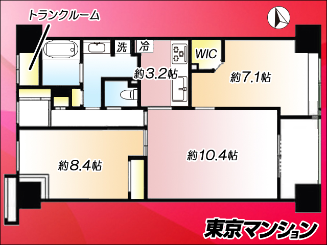 | バルコニー(主要採光面) | 4.80m2(1.45坪) 東向き | ||