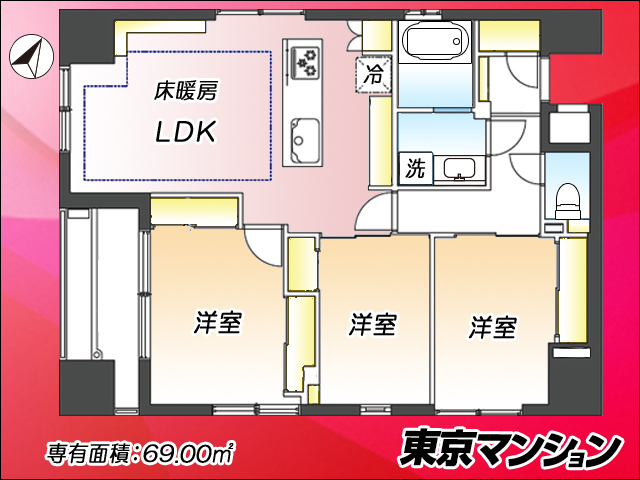 | 販売価格 | 1億3,499万円 | 専有面積 | 69.00m2(20.87坪) |