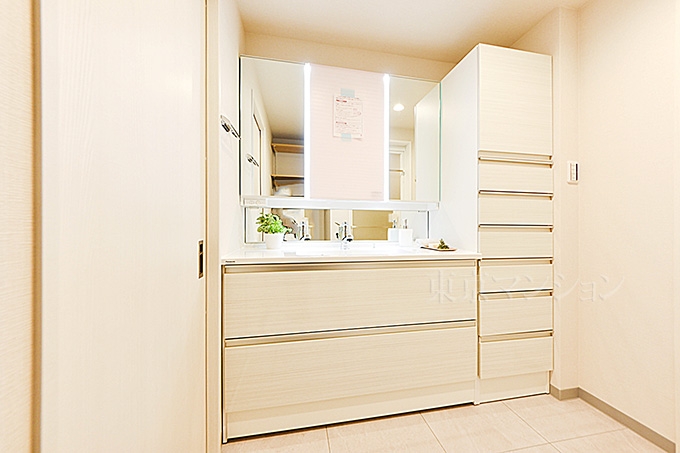 瑕疵保証付(不動産会社独自) / 修繕・点検の記録 / 駅まで平坦 / 始発駅 / LDK15畳以上 / 全居室収納 / ウォークインクローゼット / システムキッチン / 対面式キッチン / 食器洗乾燥機 / 浴室乾燥機 / 南面バルコニー / 省エネ給湯器 / 高速ネット対応 / CATV / BS端子(アンテナ) / CS端子(アンテナ) / 平面駐車場 / 駐輪場 / バイク置場 / エレベーター / 24時間ゴミ出し可 / TVモニタ付インターホン / リノベーション / 内装リフォーム / スーパー 徒歩10分以内 / 小学校 徒歩10分以内 / 即入居可