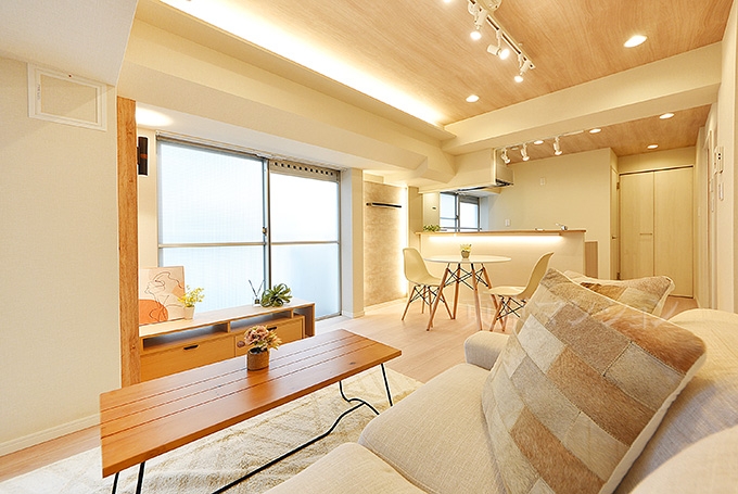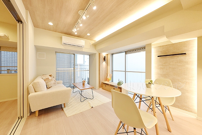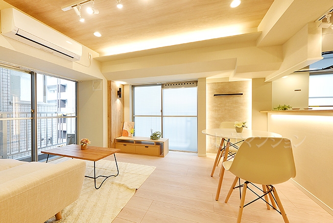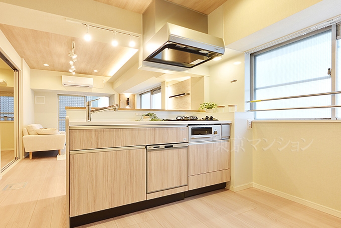 2沿線以上利用可 / 角住戸 / 24時間換気システム / エアコン / 室内洗濯機置場 / システムキッチン / 食器洗乾燥機 / 浴室乾燥機 / 追焚機能 / シャワー / バス・トイレ別 / 室内洗濯機置場 / エレベーター / 内装リフォーム / 家具・家電付 / 照明器具付